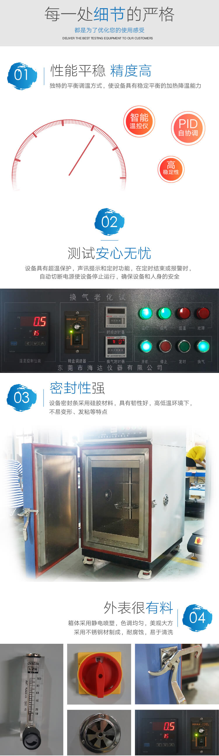 換氣老化試驗機適用于電線類、皮類、塑料類、橡膠類、布類等受熱前和受熱后變化特性。針對電線類在受熱時為維持箱內新鮮的空氣,故特制換氣量的調節。
