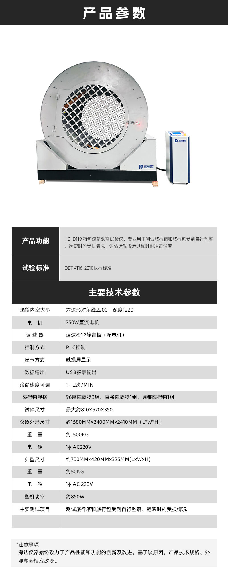 箱包滾筒跌落試驗儀專業用于測試旅行箱和旅行包受到自行墜落、翻滾時的受損情況,評估運輸搬運過程時耐沖擊強度