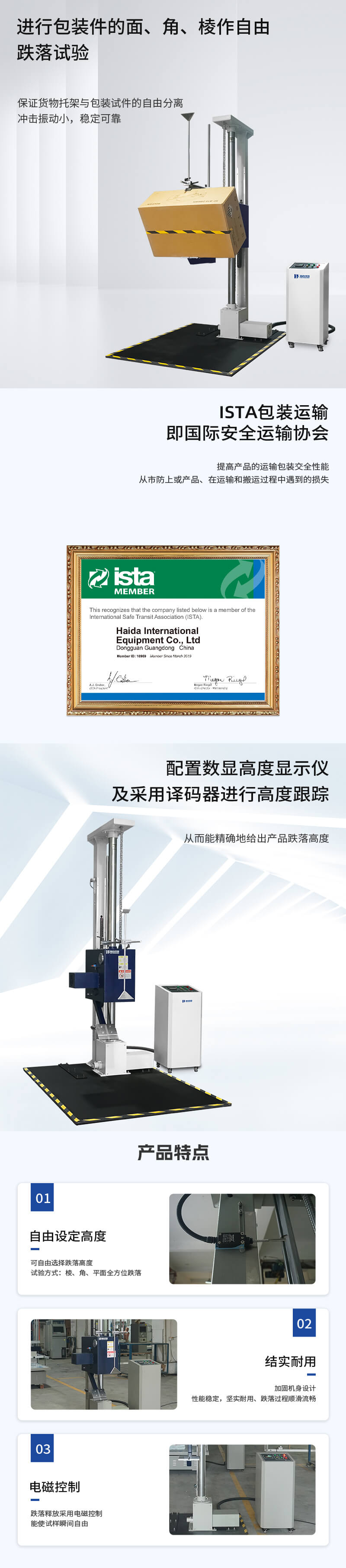 主要測試項目 | 測試產(chǎn)品包裝運輸過程中耐沖擊強度和跌落沖擊的影響程度 |
