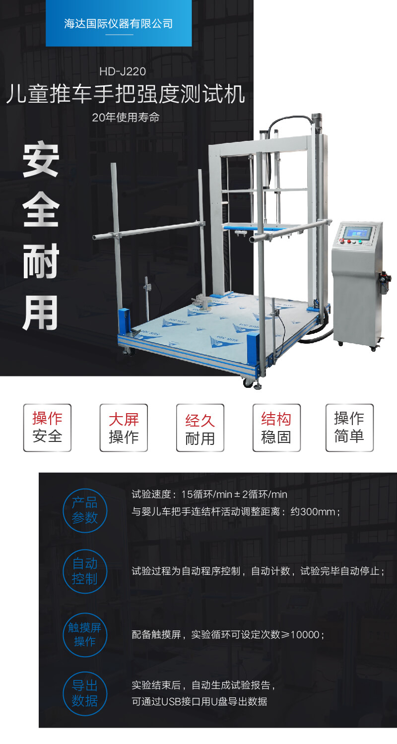 兒童推車手把強(qiáng)度測(cè)試儀適用于檢測(cè)兒童推車手把強(qiáng)度,模擬兒童推車手把多次使用后其結(jié)構(gòu)件的完整性和功能是否缺失。